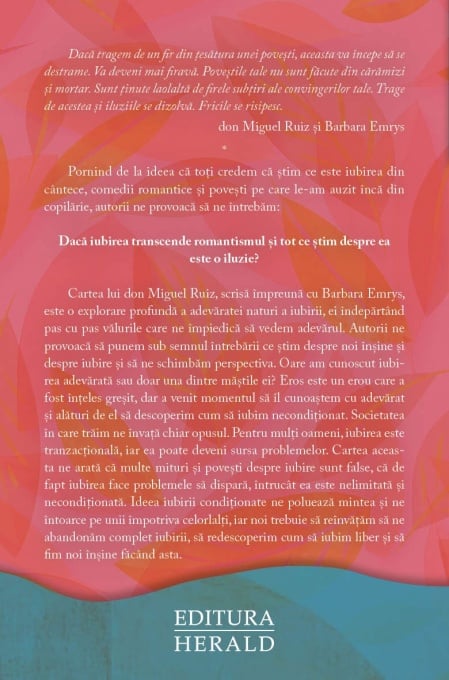 In acest volum, don Miguel Ruiz si Barbara Emrys ofera o perspectiva clara si profunda asupra modului in care putem depasi aceste tipare si cum ne putem deschide catre iubirea neconditionata.