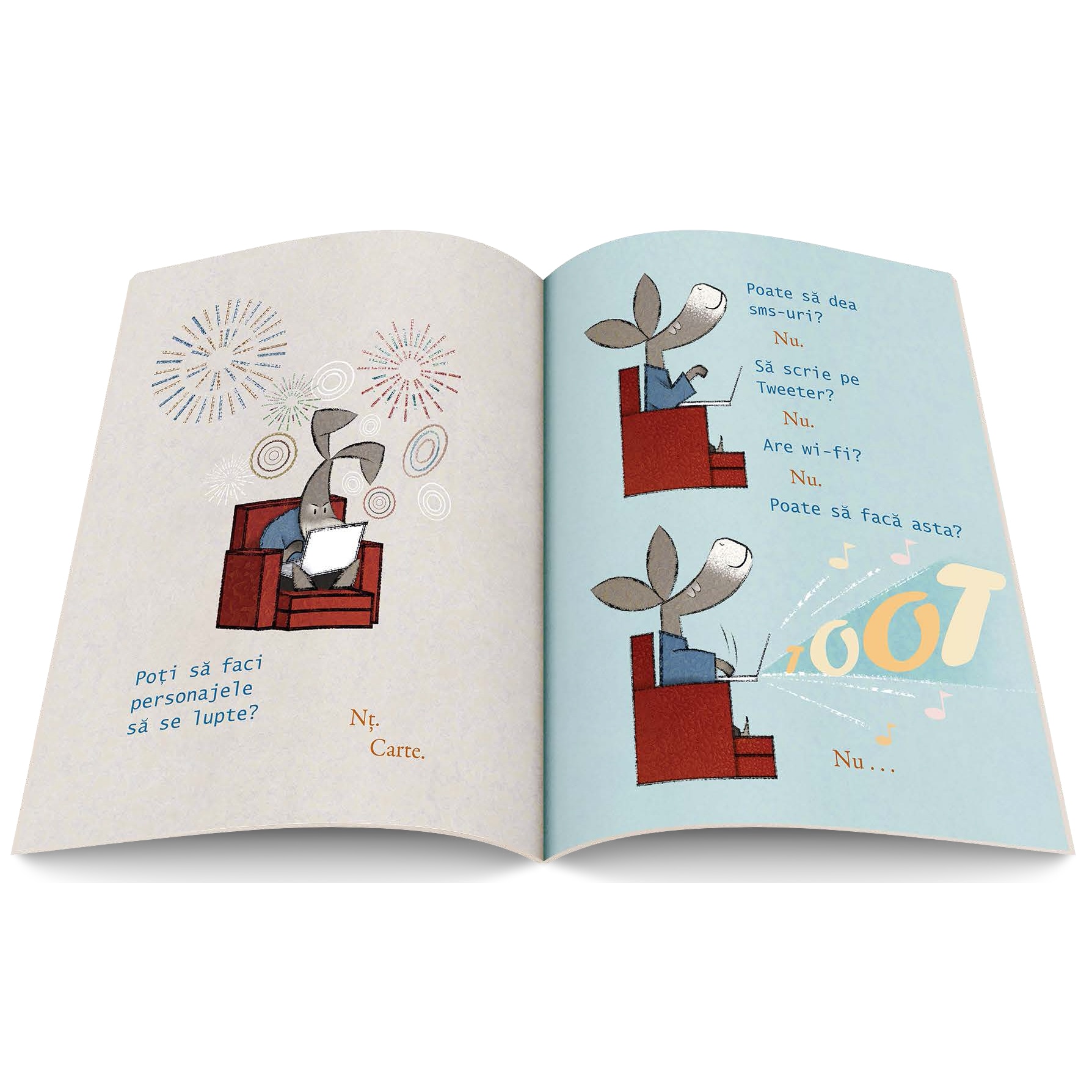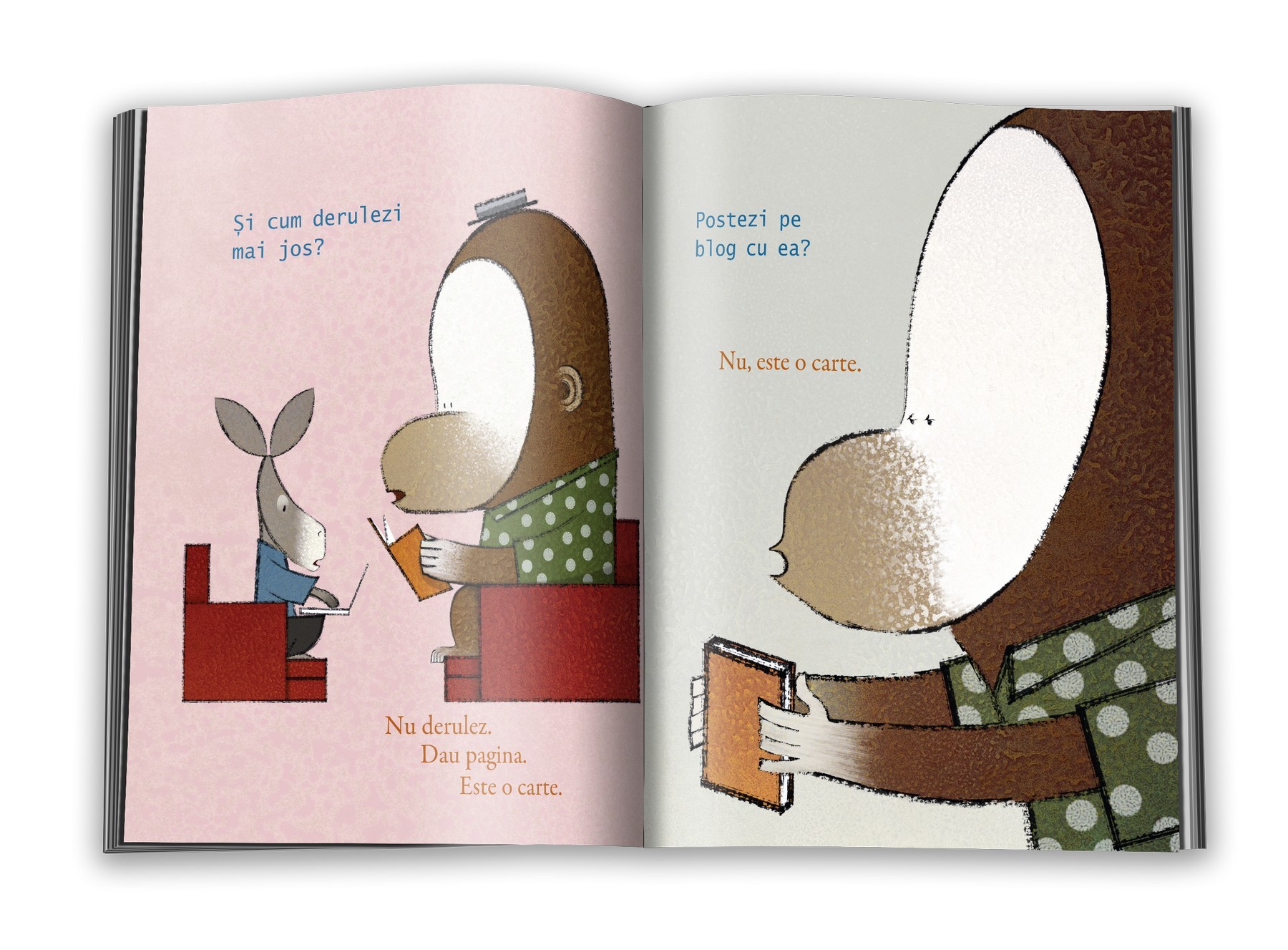 Volumul scris şi ilustrat de Lane Smith este o pledoarie pentru cartea tipărită, într-o eră dominată de digital. Personajele cărţii sunt un măgar modern şi hiperactiv, care dă SMS-uri şi stă pe Tweeter, şi o maimuţă studioasă, care nu vrea decât să dea în tihnă paginile cărţii pe care o citeşte. Umorul fin al autorului va fi gustat deopotrivă de cei mici, dar şi de părinţii lor. Este o carte a fost desemnată „Cea mai bună carte pentru copii a anului” în 2010 de către revista Publishers Weekly, iar până acum a fost tradusă în 20 de limbi. Timp de şase luni, s-a aflat pe lista de bestseller-uri întocmită de New York Times.