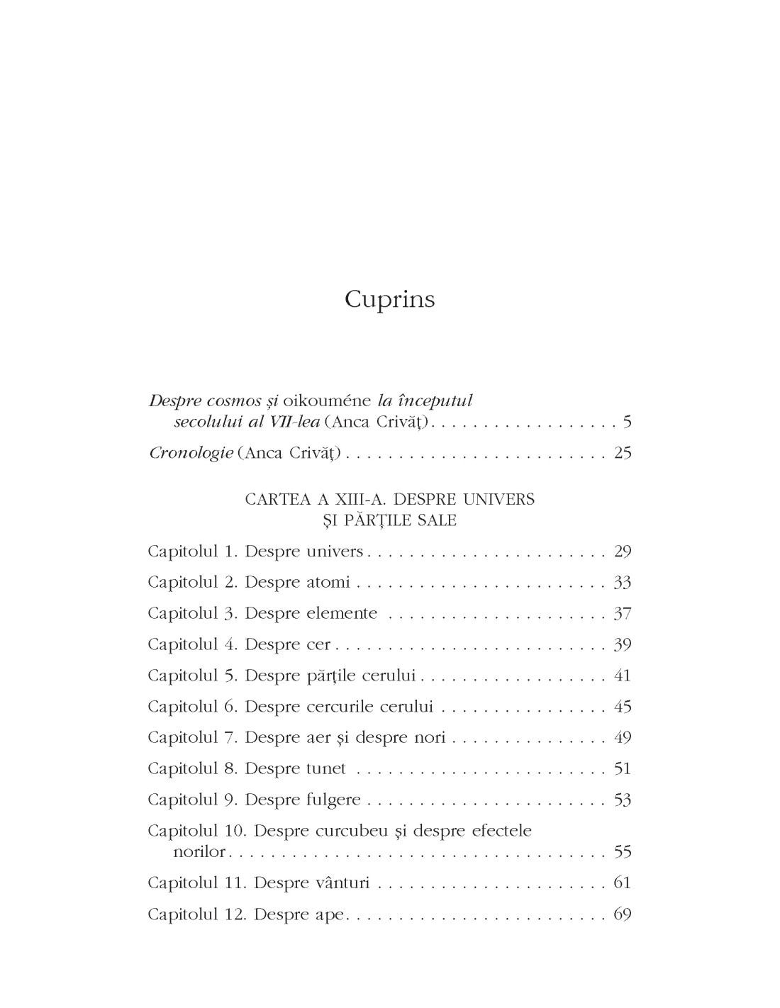 Nu citim însă doar despre forma și alcătuirea universului și ale Pământului situat în centrul acestuia, nu aflăm doar cum arăta harta cerului și a lumii locuite de om, ci și, în paralel, cum li s-au pus nume tuturor acestora și cum toate au fost înțelese grație acelor nume.