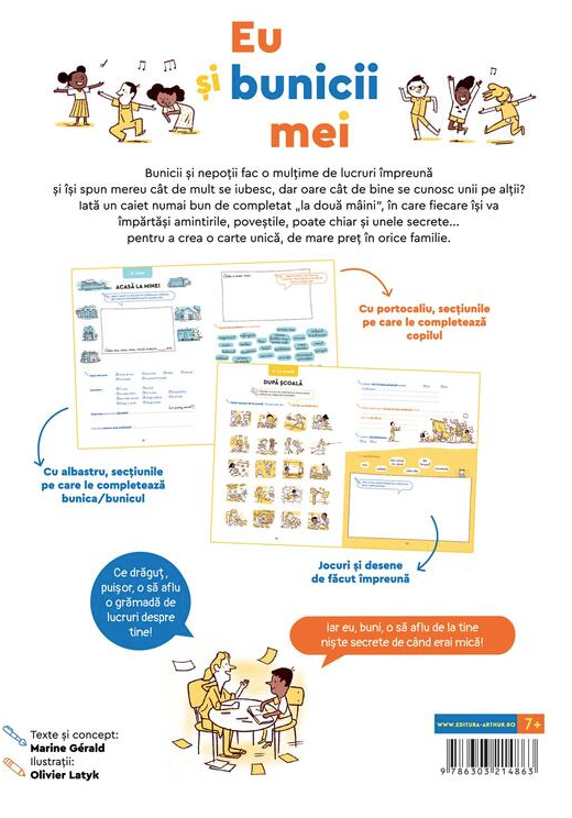 Zonele dedicate fiecăruia și marcate prin culori diferite dau startul unor conversaţii noi şi consemnează amintiri din copilăria bunicilor, dar şi detalii din cotidianul copiilor.