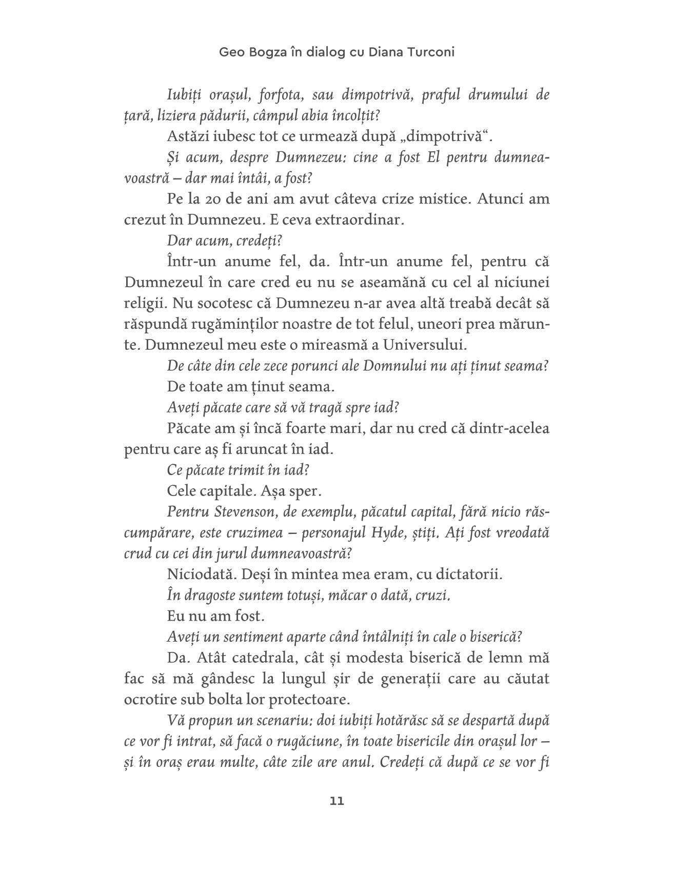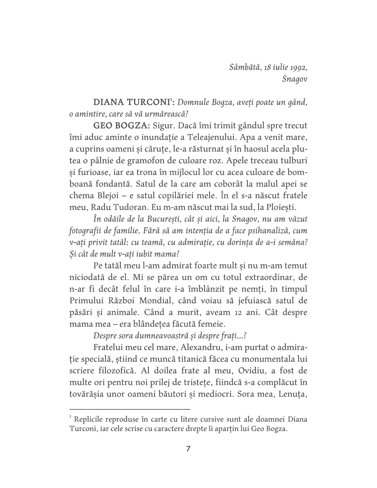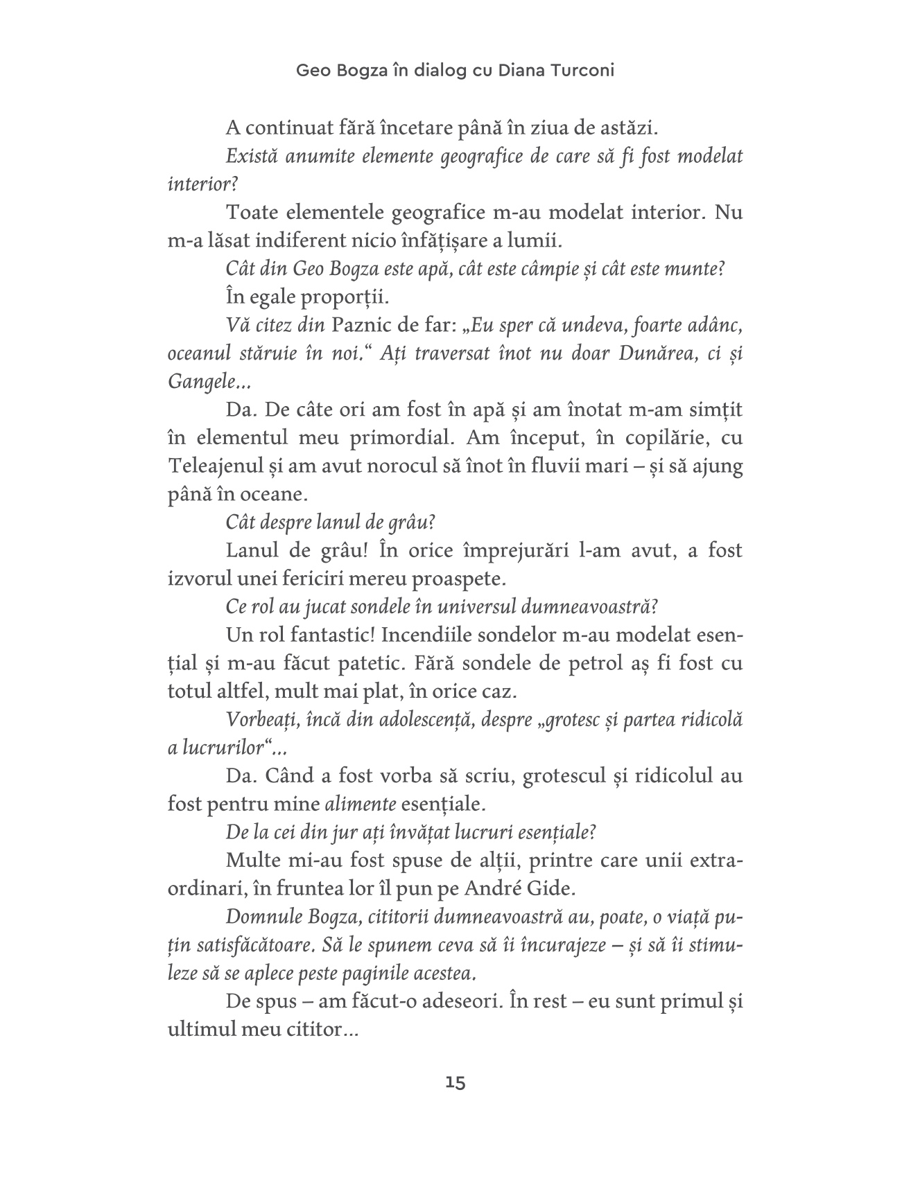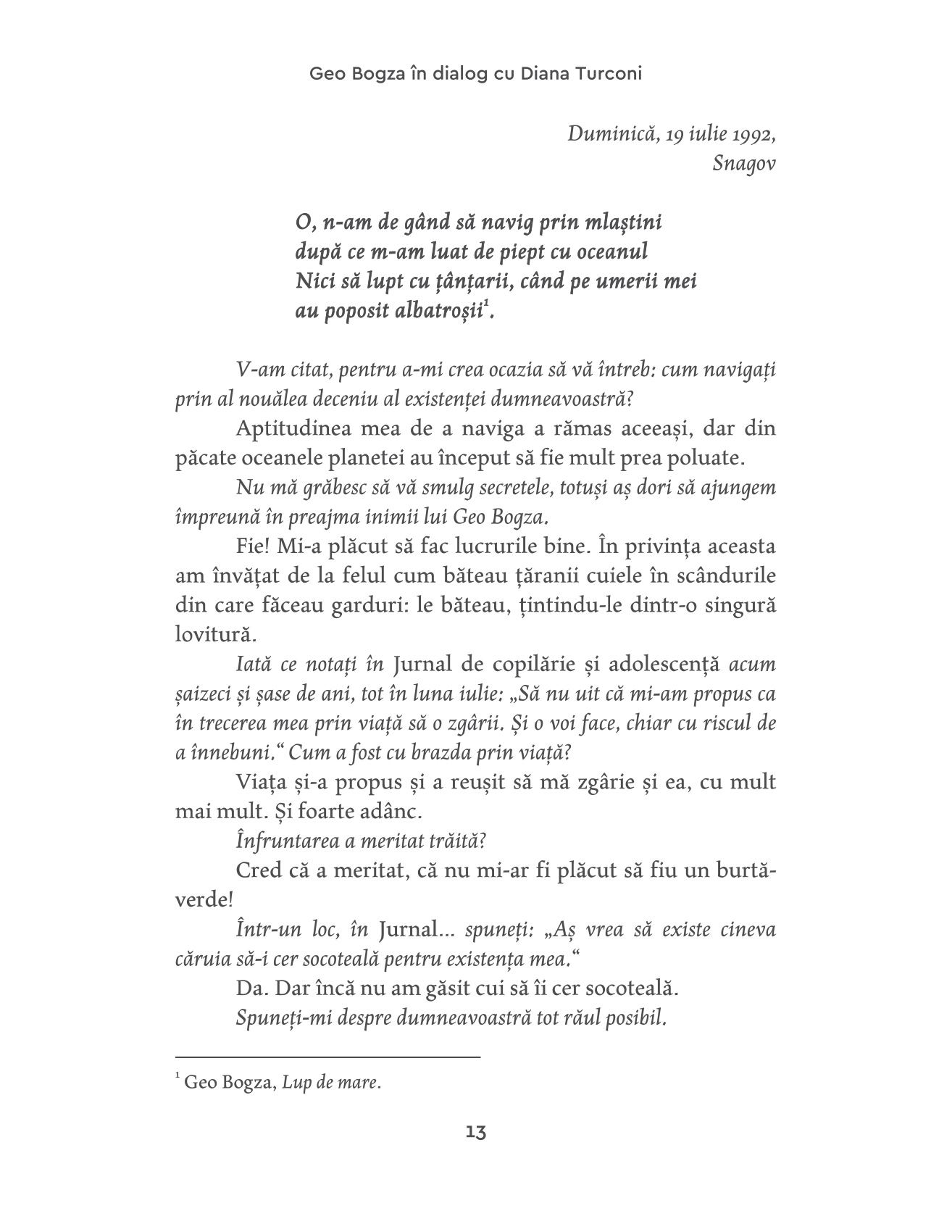 "Sunt convins că proiectul final al lui Geo Bogza a fost acela de a traversa ultima încercare a destinului în deplină demnitate și, dacă se poate - în mod incredibil, Bogza a putut! -, regăsind mari insule de seninătate în singurătatea sa.