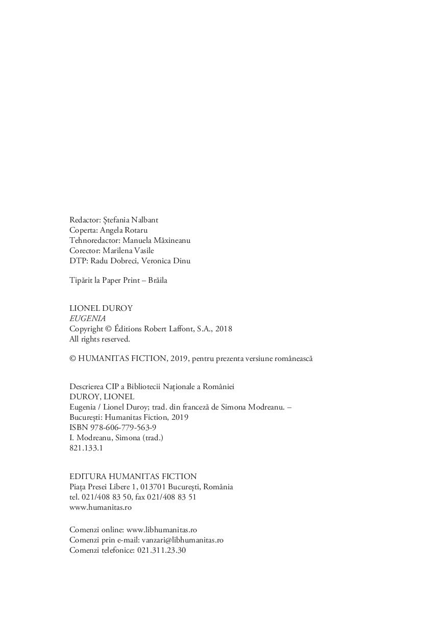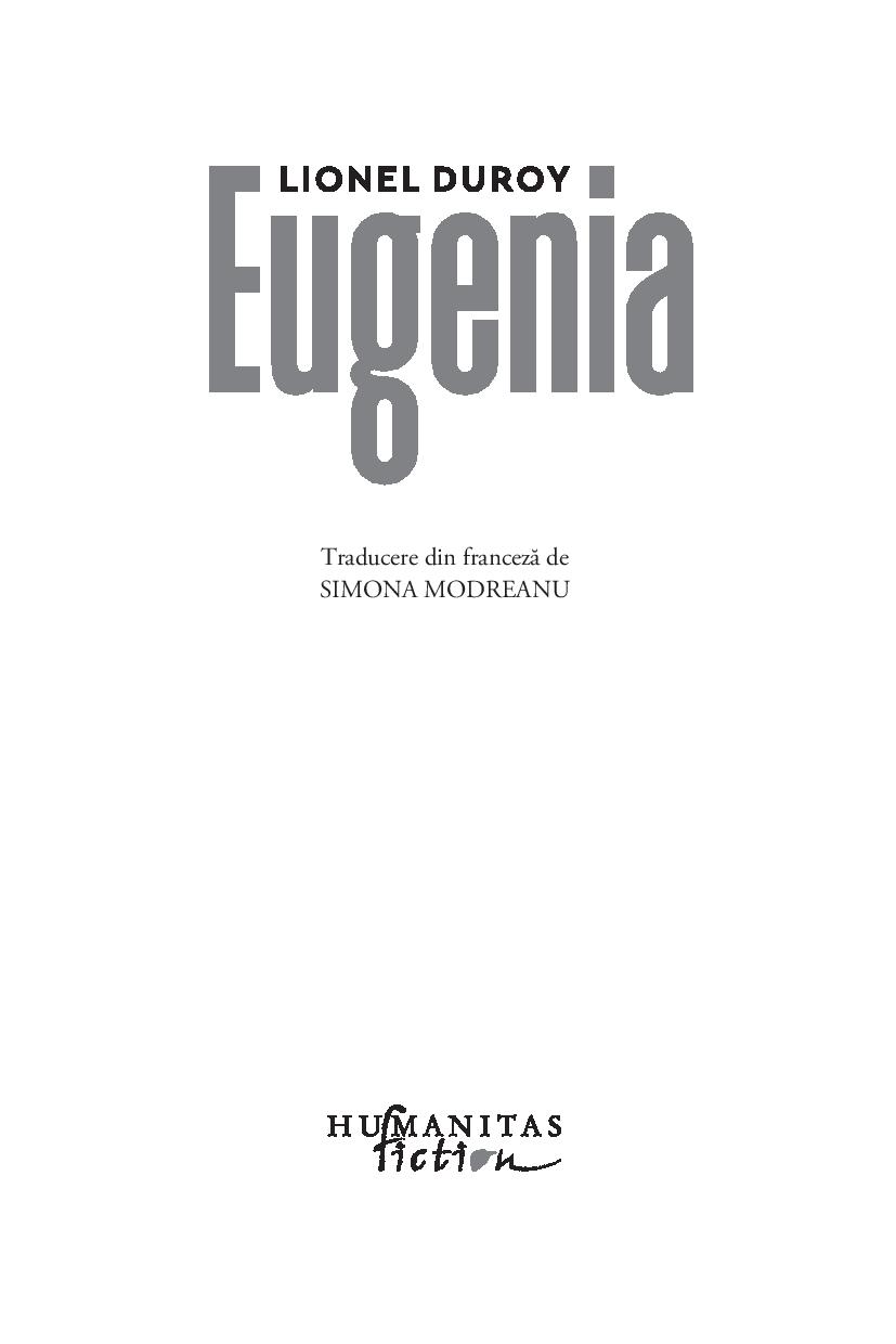 O ambițioasă frescă a României anilor 1930–1940, Eugenia este un roman vibrant, scris pe mai multe niveluri, în care ficțiunea și realitatea se împletesc pentru a pune sub lupă originea urii și a violenței și, nu în ultimul rând, uimitoarea rezistență a celui mai fragil dintre sentimente – dragostea. Articulându-se în jurul Jurnalului lui Mihail Sebastian, povestea de iubire imaginată de Lionel Duroy ocolește judecățile definitive, dar nu și întrebările dureroase. În 2019, cărții i-a fost acordat Premiul Anaïs Nin.