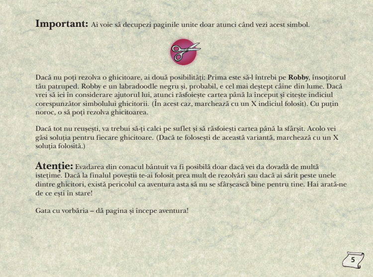 Această carte nu este doar o poveste - este un joc de evadare plin de enigme, aventuri și jocuri palpitante. Pe fiecare pagină, vei fi provocat să rezolvi mistere ingenios ticluite, să descoperi indicii bine ascunse și să navighezi prin labirinturi întortocheate.
