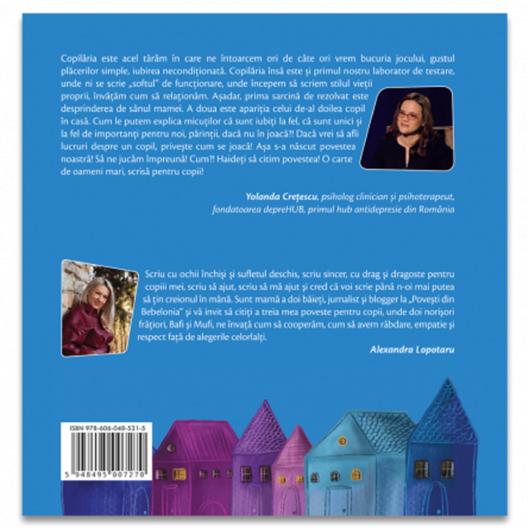 Copilăria este acel tărâm în care ne întoarcem ori de câte ori vrem bucuria jocului, gustul plăcerilor simple, iubirea necondiționată. Copilăria însă este și primul nostru laborator de testare, unde ni se scrie „softul” de funcționare, unde începem să scriem stilul vieții proprii, învățăm cum să relaționăm. Așadar, prima sarcină de rezolvat este desprinderea de sânul mamei. A doua este apariția celui de-al doilea copil în casă. Cum le putem explica micuților că sunt iubiți la fel, că sunt unici și la fel de importanți pentru noi, părinții, dacă nu în joacă?! Dacă vrei să afli lucruri despre un copil, privește cum se joacă! Așa s-a născut povestea noastră! Să ne jucăm împreună! Cum?! Haideți să citim povestea! O carte de oameni mari, scrisă pentru copii!