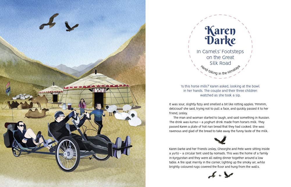 Ski to the North Pole with Ann Daniels while watching out for polar bears and lethal cracks in the ice. Feel the air beneath your feet as you climb high on a cliff face with Gwen Moffat. Experience the thrill of racing down rocky Himalayan trails with champion runner Mira Rai. Sail the oceans with Ellen MacArthur, the girl who saved up her lunch money to buy her first boat. You'll even fly into space with Britain's first astronaut, Helen Sharman. And join Lily on other awesome adventures with Anna McNuff, Sarah Outen, Misba Khan and more taking you from Everest to the South Pole and all the places in between.