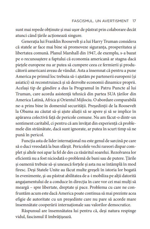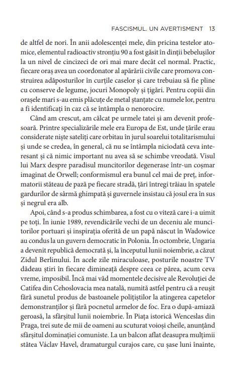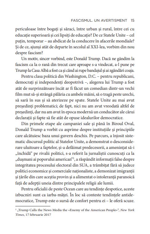 În lucrarea sa publicată în 2018 în Statele Unite, Madeleine Albright, prima femeie secretar de stat (perioada administrației Clinton, între 1997 și 2001), trage un semnal de alarmă privind ascensiunea populismului și chiar apariția fascismului în lume. Autoarea vorbește despre erodarea democrației liberale, despre o veritabilă criză politică și despre creșterea amenințării fascismului, nu numai în Statele Unite, ci în toată lumea. Volumul, care scoate în evidență numeroase similitudini între evenimentele din ultimii ani din Europa și ceea ce s-a întâmplat în urmă cu un secol, va fi publicat de Editura RAO în septembrie. Doamna secretar de stat. Memorii, prima carte semnată de Madeleine Albright, a apărut în România în 2008, la aceeași editură.