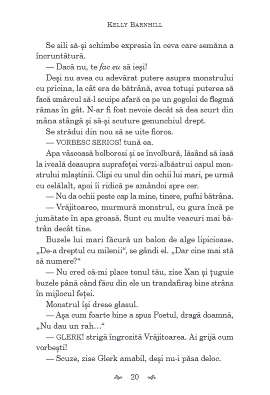 Pe drum, Xan îi ține pe copii la piept și le dă să bea lumina stelelor. O dată, o singură dată, din greșeală, bătrâna hrănește o fetiță cu lumina lunii, dându-i astfel puteri magice neînchipuit de mari și legându-și pe vecie destinul de al fetei care a băut luna.