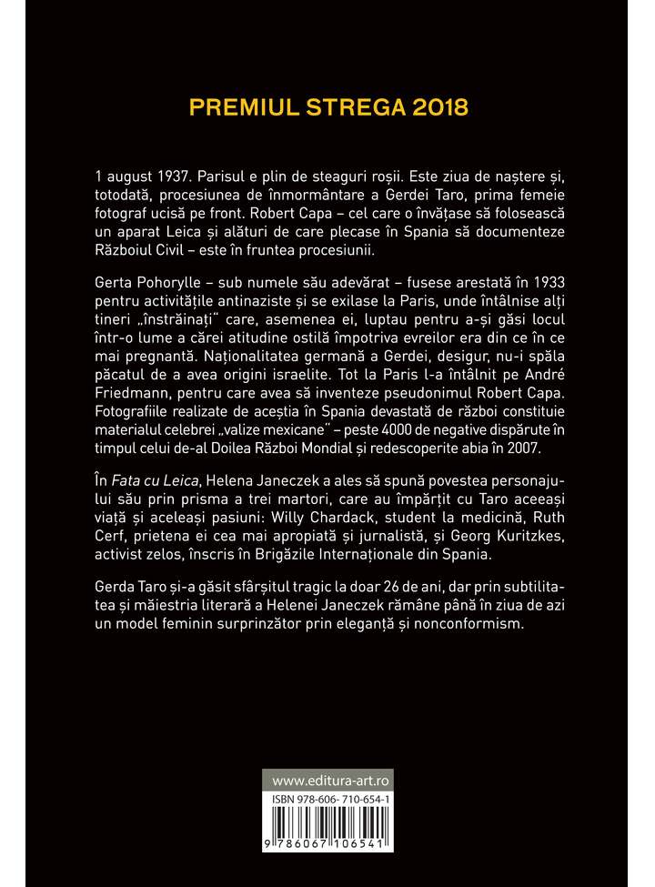 Gerda Taro și-a găsit sfârșitul tragic la doar 26 de ani, dar prin subtilitatea și măiestria literară a Helenei Janeczek rămâne până în ziua de azi un model feminin surprinzător prin eleganță și noncorformism.