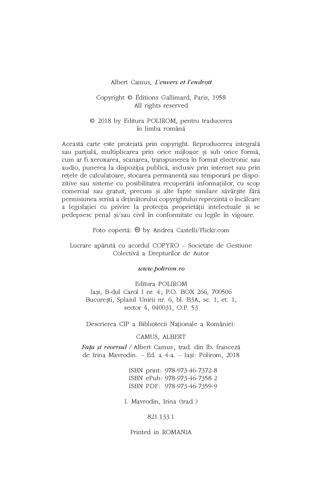 Faţa şi reversul este prima carte a lui Albert Camus. A fost publicată în 1937, în Alger. La sfîrşitul vieţii, Camus va vedea în această operă din tinereţe sursa secretă care a alimentat sau ar fi trebuit să alimenteze tot ce a scris.