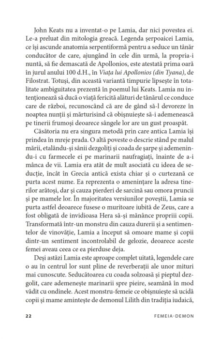 SARAH CLEGG ne poartă în această carte într-o călătorie fascinantă și pătrunzătoare din Mesopotamia antică până în zilele noastre, ajuntându-ne să descoperim o multitudine de sucubi colubriformi, monștri-lupi ai Eladei care devorează copii, pe regina din Saba și o grămadă de vampiri. Autoarea ne arată cum societățile patriarhale au asimilat acești demoni, înainte ca, în cele din urmă, ei să devină niște simboluri ale emancipării femeilor, oferind noi perspective asupra atitudinii față de feminitate, sexualitate și drepturile femeilor.