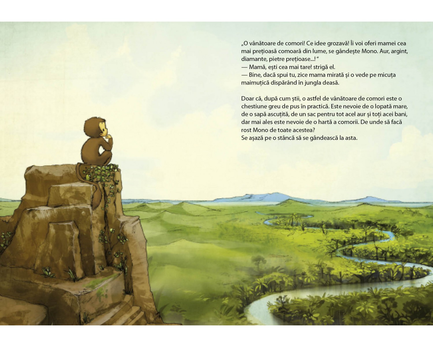 Micuța maimuță este plictisită și, din cauza zgomotelor puternice din junglă, își înțelege greșit mama și crede că ar trebui să îi caute o comoară. Mono pornește în căutarea celei mai mari comori din lume pe care să i-o dăruiască mamei sale. Se întoarce acasă dezamăgit, dându-și seama că mulți prieteni din junglă au deja o mare comoară.