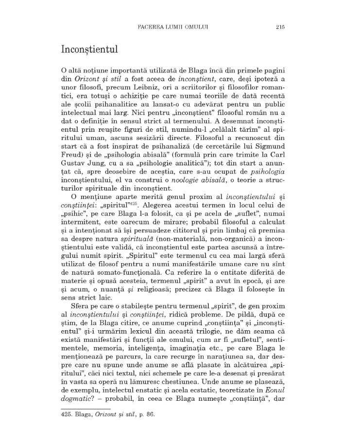Sistemul filosofic blagian este un uriaș postulat, format din nenumărate postulate concrete, toate înlănțuite într-un foileton filosofic grandios și în esență netestabil. Fundamentul ultim pe care se sprijină întreaga construcție și în care îi stau rădăcinile este Geneza biblică. (Marta Petreu)