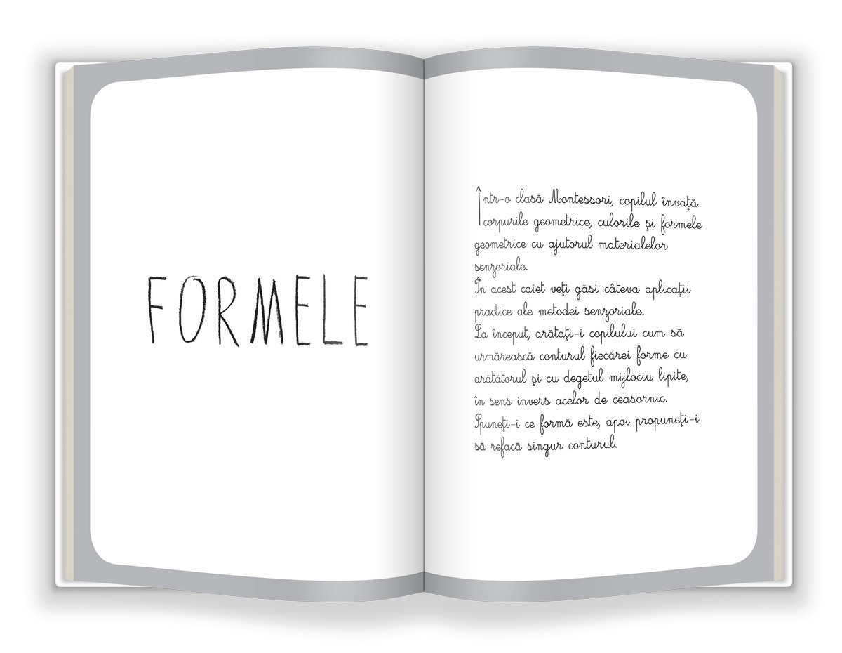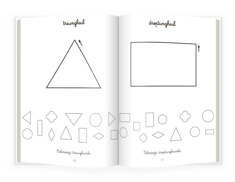 Caietul se adresează copilului aflat în perioada senzitivă a ordinii, când devine interesat de forme geometrice și numere.