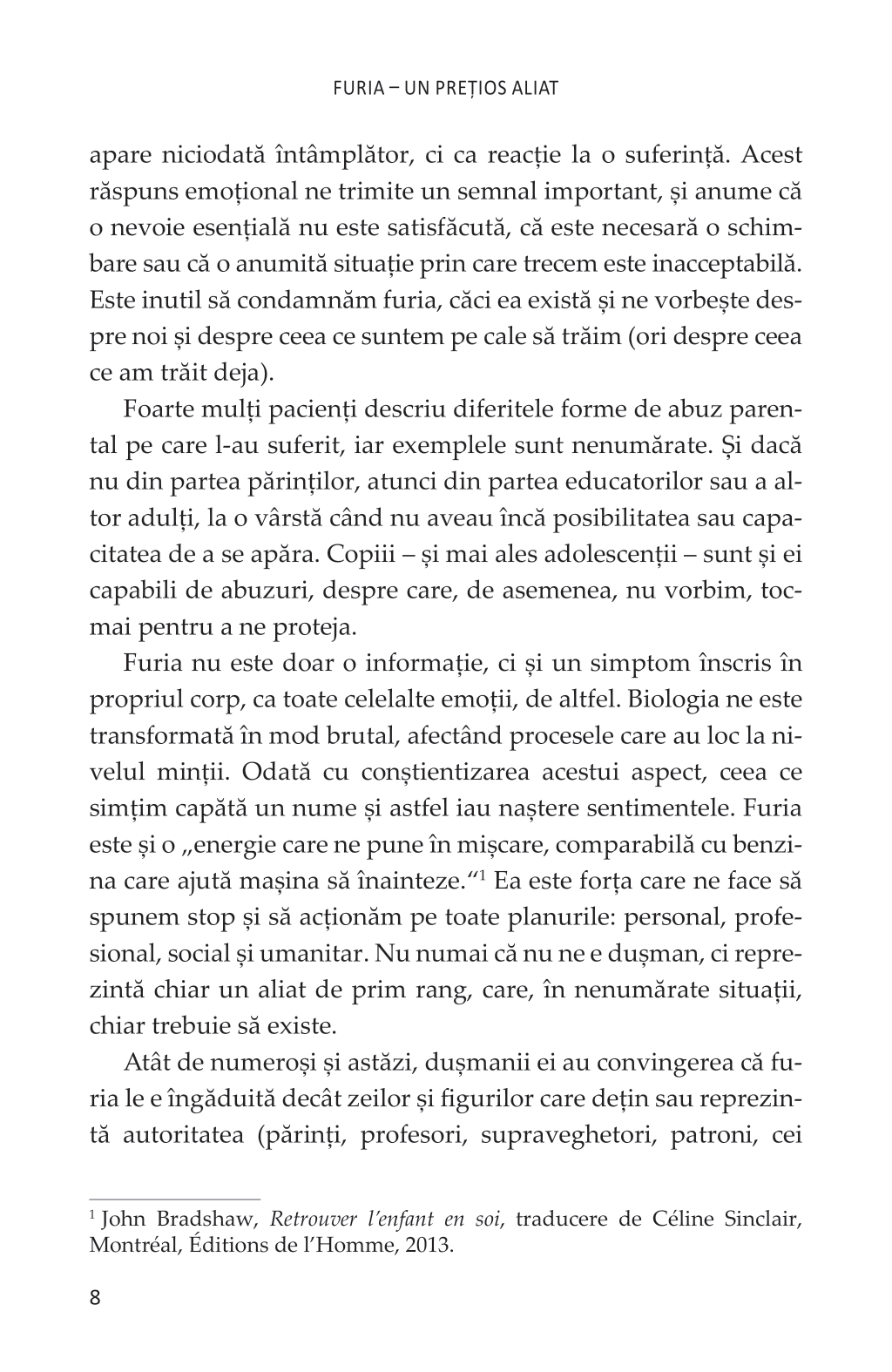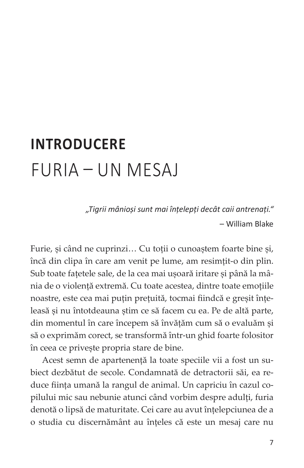 Una dintre cele mai primitive emoții pe care le simțim, furia continuă să fie și-acum un tabu. Faptul că a continuat să existe pe tot parcursul evoluției rasei umane demonstrează cât de importantă este ea pentru supraviețuire. Departe de a fi vreo slăbiciune sau un păcat, furia este o emoție utilă și necesară, pe care și-o exprimă adulții liberi, maturi afectiv și înzestrați cu inteligență emoțională.
