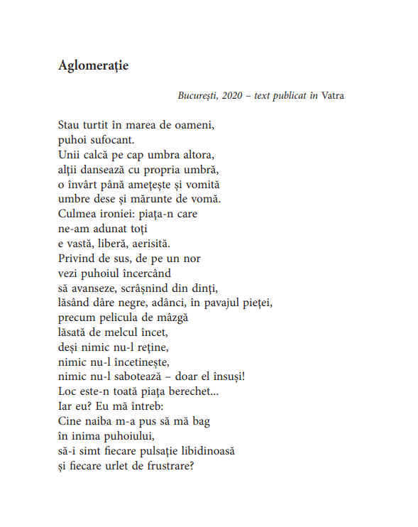 Cititorul este provocat să participe la acest joc de (auto)descoperire, să accepte fărâmițarea și să găsească în ea o oglindă a noilor realități. Pe cale de consecință, nu este un volum care să-ți ofere confortul familiarității.