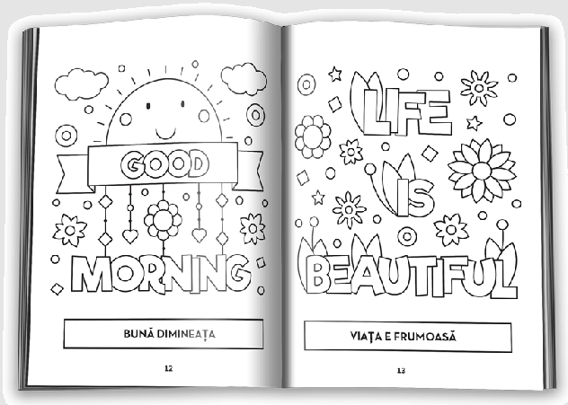 Cu ajutorul acestei cărți de colorat, copilul va exersa identificarea și exprimarea emoțiilor, dând frâu liber creativității. Afirmațiile pozitive, traduse în josul paginii, îl vor ajuta să-și dezvolte încrederea în sine, dar și cunoștințele de limbă engleză, stimulându-i, în același timp, o gândire pozitivă.