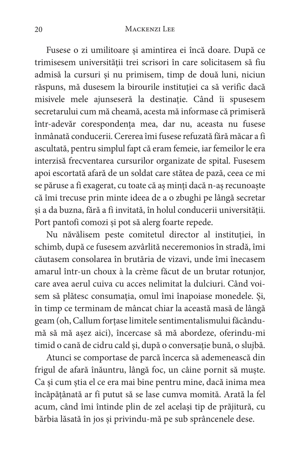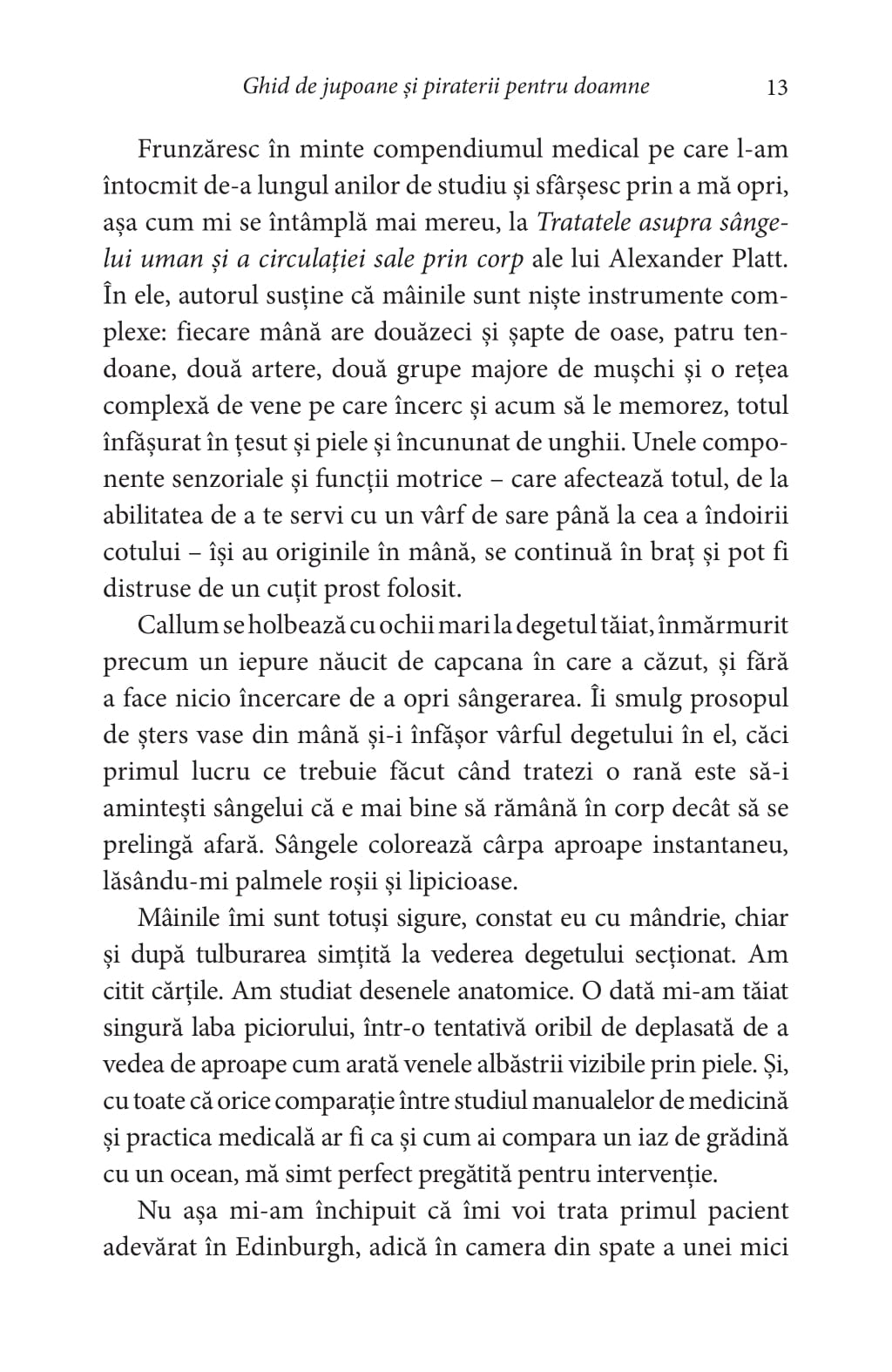 Istețimea, pasiunea și erudiția tinerei nu sunt însă suficiente pentru a-i convinge pe venerabilii doctori din Edinburgh, care consideră că știința este un domeniu rezervat bărbaților. Speranța încolțește în inima lui Felicity atunci când află că idolul ei, medicul Alexander Platt, caută ajutoare pentru viitoarea expediție în Statele Berbere.