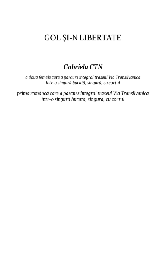 Gol și-n libertate este cartea care abordează psihologia unui drum de 1400 km, petrecut singur la cort.