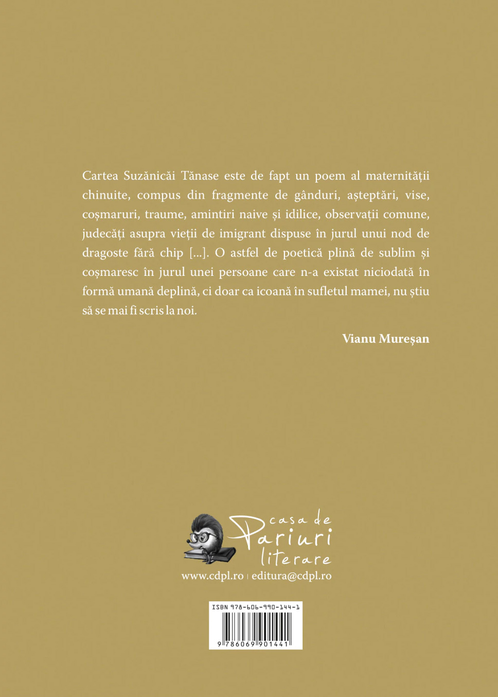 Ceea ce uimește aici este, în primul rând, perspectiva aleasă de Suzănica Tănase, focalizată pe „viața” copilei aflate în stadiu embrionar, de abia 11 săptămâni, deci transformarea în personaj vivant a unui copil care n-a venit încă la viață, care este doar un germene în corpul mamei, însă proiectat pretimpuriu, aproape anxios, într-o persoană reală, micuța Sofia. Este o persoană anticipată de iubirea mamei, care pare nerăbdătoare să-și introducă fata în aerul de familie, grăbindu-și la rândul ei fericirea alături de ea. Îi simte mirosul, o ține de mână, dacă plânge lacrimile ei ajung la fetiță, care le gustă, râd împreună ferite de ochii familiei, au micile lor secrete, mama îi vorbește despre bunica de la țară din Moldova, despre măicuța de la Văratec, despre Veronica Micle, despre copiii cu care se juca în școală, fetița desenează pe dinăuntru pe pielea mamei când e binedispusă. Într-o zi mama o va îmbrăca într-o rochiță albastră precum „marea, cerul și ochii” bunicii și vor planta împreună flori în grădină. Nenăscută încă, Sofia est un chip al așteptării și iubirii materne, „a doua inimă” a mamei. Însă…