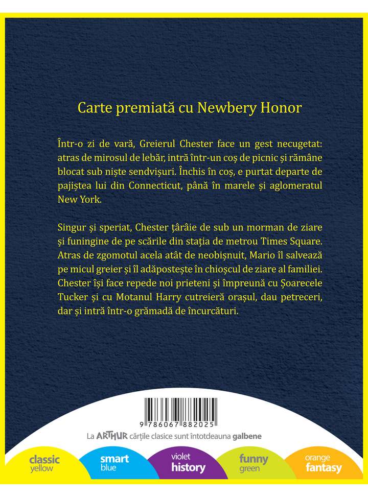 Într-o zi de vară, Greierul Chester face un gest necugetat: atras de mirosul de lebăr, intră într-un coș de picnic și rămâne blocat sub niște sendvișuri. Închis în coș, e purtat departe de pajiștea lui din Connecticut, până în marele și aglomeratul New York.