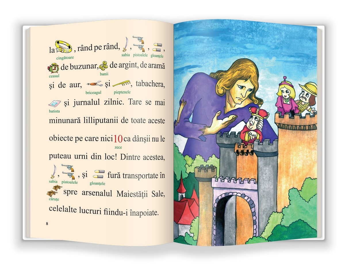 Cartea face parte din colecția „Învăț să citesc! Nivelul 1” și prezintă povestea „Gulliver în Lilliput” destinată micilor cititori începători, care abia încep să citească fluent. Cartea, repovestire după Jonathan Swift, include ilustrații deasupra cuvintelor, pentru a ușura asocierea cuvânt-sens. Lucrarea îl va ajuta pe copil să își exerseze citirea, iar ilustrațiile color și fontul de dimensiuni mari vor face ca textul să fie mai răsfirat și, implicit, ca lectura să fie mai atrăgătoare și mai ușor de parcurs. Cartea este destinată copiilor de 7-8 ani.
