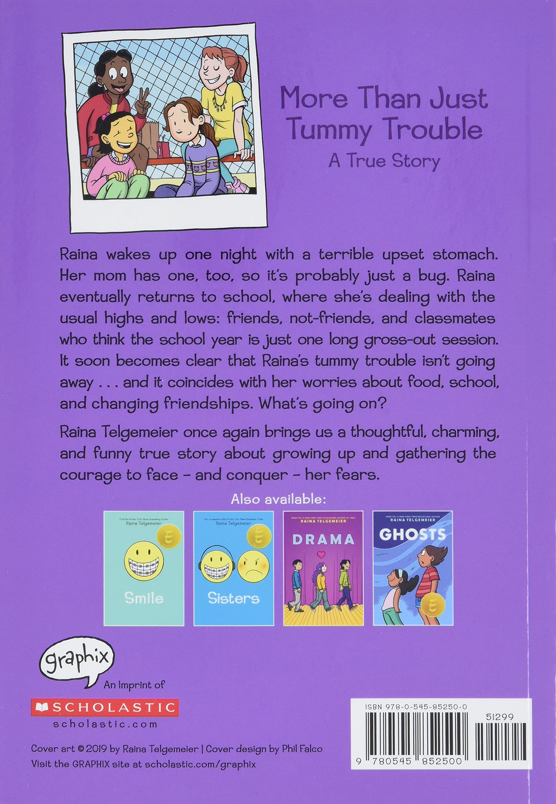 A true story from Raina Telgemeier, the #1 New York Times bestselling, multiple award-winning author of Smile, Sisters, Drama, and Ghosts! Raina wakes up one night with a terrible upset stomach. Her mom has one, too, so it's probably just a bug. Raina eventually returns to school, where she's dealing with the usual highs and lows: friends, not-friends, and classmates who think the school year is just one long gross-out session.