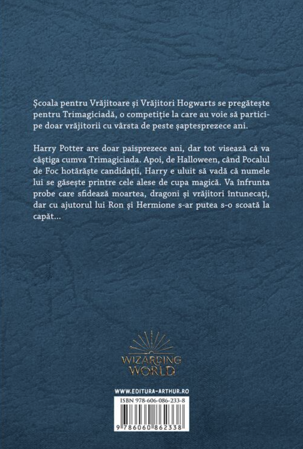 Harry Potter are doar paisprezece ani, dar visează că va câștiga cumva Trimagiciada. Apoi, de Halloween, când Pocalul de Foc hotărăște candidații, Harry e uluit să vadă că numele lui se găsește printre cele alese de cupa magică. Va înfrunta probe care sfidează moartea, dragoni și vrăjitori întunecați, dar cu ajutorul lui Ron și Hermione s-ar putea s-o scoată la capăt...