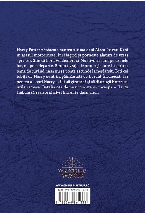 Harry Potter părăsește pentru ultima oară Aleea Privet. Urcă în atașul motocicletei lui Hagrid și pornește alături de uriaș spre cer. Știe că Lord Voldemort și Mortivorii sunt pe urmele lor, nu prea departe. E ruptă vraja de protecție care l-a apărat până de curând, însă el nu se poate ascunde la nesfârșit. Toți cei iubiți de Harry sunt înspăimântați de Lordul Întunecat, iar pentru a-l opri Harry e silit să găsească și să distrugă Horcruxurile rămase. Bătălia cea de pe urmă stă să înceapă – Harry trebuie să reziste și să-și înfrunte dușmanul.