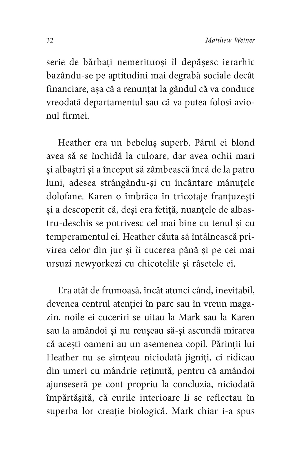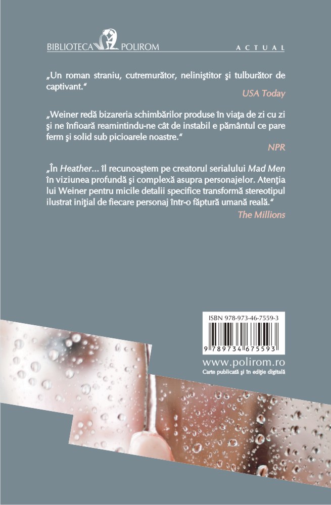 „În Heather... îl recunoaştem pe creatorul serialului Mad Men în viziunea profundă şi complexă asupra personajelor. Atenţia lui Weiner pentru micile detalii specifice transformă stereotipul ilustrat iniţial de fiecare personaj într-o făptură umană reală.” (The Millions)