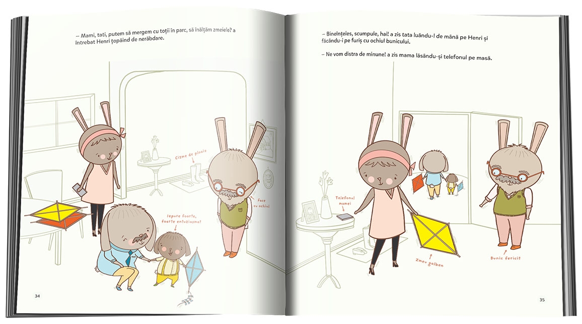 Din fericire, iepurele lui preferat, bunicul, îi va ajuta pe el și pe părinții lui să înțeleagă că tot ce trebuie să faci ca să fii fericit și liniștit este să-ți ridici privirea… și să petreci timp cu cei pe care-i iubești.