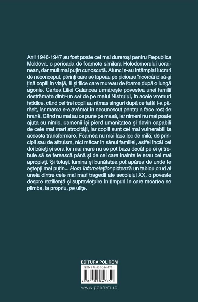 Cartea Liliei Calancea urmărește povestea unei familii destrămate dintr-un sat de pe malul Nistrului, în acele vremuri fatidice, când cei trei copii au rămas singuri după ce tatăl i-a părăsit, iar mama s-a avântat în necunoscut pentru a face rost de hrană. Când nu mai au ce pune pe masă, iar nimeni nu mai poate ajuta cu nimic, oamenii își pierd umanitatea și devin capabili de cele mai mari atrocități, iar copiii sunt cei mai vulnerabili la această transformare. Foamea nu mai lasă loc de milă, de principii sau de altruism, nici măcar în sânul familiei, astfel încât cei doi băieți și sora lor mai mare nu se pot baza decât pe ei și trebuie să se ferească până și de cei care înainte le erau cei mai apropiați. Și totuși, lumina și bunătatea pot apărea de unde te aștepți mai puțin...