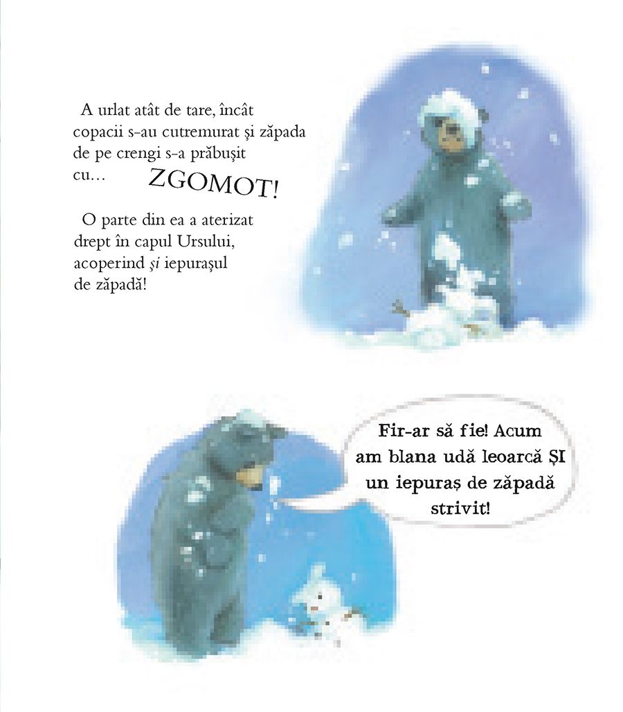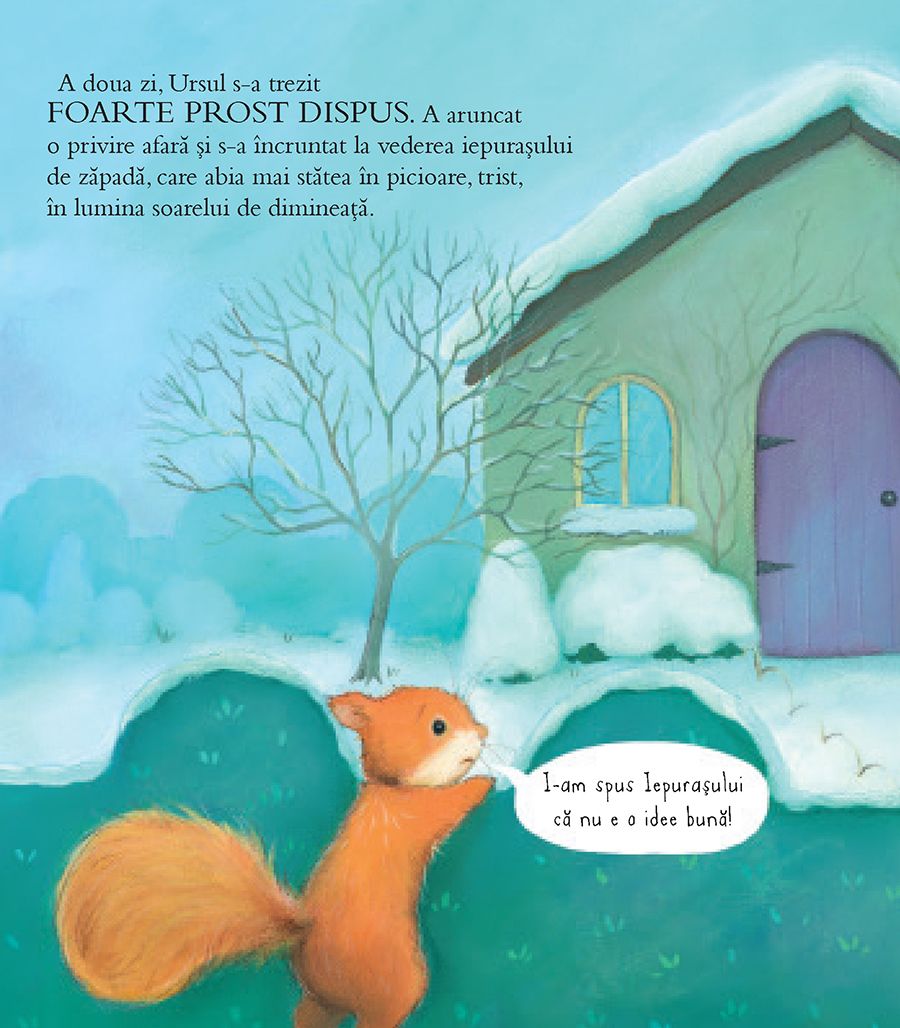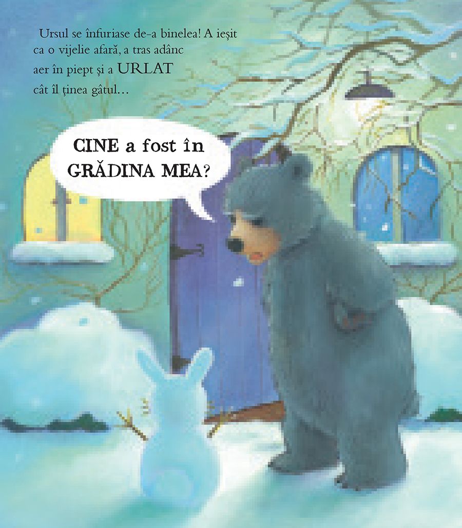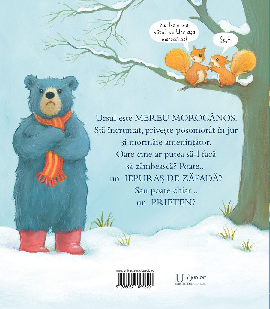 Ursul este MEREU MOROCĂNOS. Stă încruntat, priveşte posomorât în jur şi mormăie ameninţător. Oare cine ar putea să-l facă să zâmbească? Poate... un IEPURAŞ DE ZĂPADĂ? Sau poate chiar... un PRIETEN?