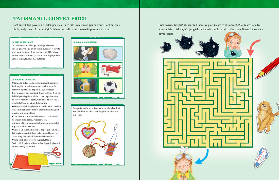 Împrietenește-te cu Frica, în completarea cărții Ioanei Chicet-Macoveiciuc Pilot, băieţelul care se temea de (aproape) tot, este un caiet plin de activități utile care vă vor ajuta să vă gestionați ușor toate temerile provocate de pericole reale sau imaginare.