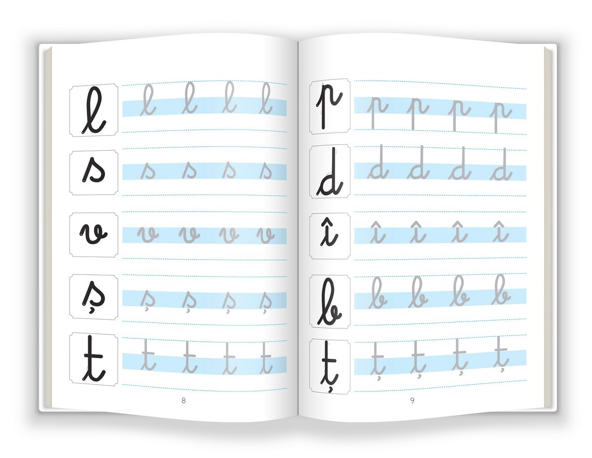 Caietul urmărește atât exersarea scrisului cu litere cursive, cât și îmbogățirea vocabularului. Liniatura este utilă, pentru a ajuta copilul să păstreze un scris ordonat și să respecte dimensiunile și proporțiile literelor.