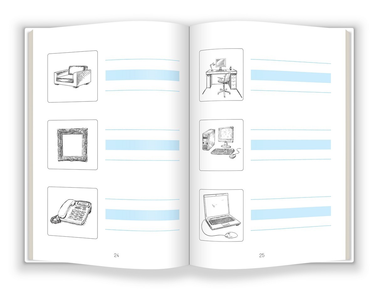 Paginile conțin peste 70 de ilustrații realiste ale obiectelor din casă.