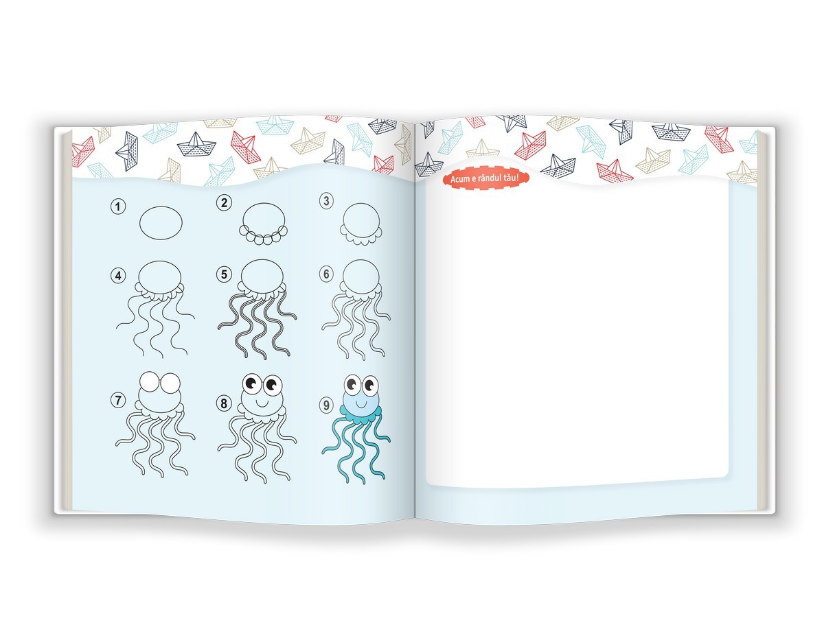 Lecții de desen. În ocean conține indicații pentru 18 desene ale unor vietăți acvatice și ale altor obiecte cu tematică marină. Oricine poate să deseneze. Dacă vă îndoiți de adevărul acestei afirmații, e posibil să confundați capacitatea de a desena cu talentul artistic.
