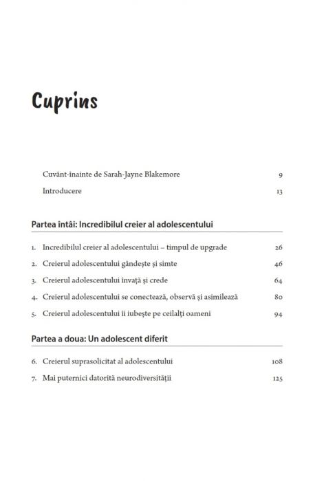 Conform autoarelor, „creierul adolescentului” este unic ceea ce vă oferă o oportunitate Incredibilă de a-i încuraja pe tineri să evolueze mai mult și să se schimbe în mod pozitiv. Tot acum este și momentul în care adolescenții sunt deosebit de sensibili și de vulnerabili. De aceea, cartea vă prezintă și diferite tehnici de comunicare eficientă cu aceștia fără a le afecta negativ stima de sine. De asemenea, aid veți găsi o mulțime de sfaturi despre ce să spuneți șl ce să nu spuneți, precum și despre cea mai potrivită atitudine pe care să o adoptați zi de zi față de adolescenții voștri.
