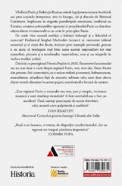 Dar de unde vine această ambiție a întinsei federații și a liderului ei autocrat? Profesorul Serghei Medvedev încearcă să contureze tabloul societății și al vieții din Rusia, inclusiv prin exemple personale, pentru a ne ajuta să înțelegem mai bine sursa acestui naționalism tot mai exacerbat, precum și a tendințelor imperialiste, care-și au originile în vechea tradiție țaristă.