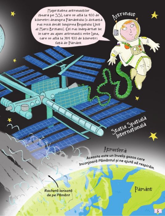 Ilustrații amuzante și întâmplări nemaipomenite îți vor dezvălui tot ce este mai fascinant, extraordinar și de-a dreptul grozav despre Astronauți.