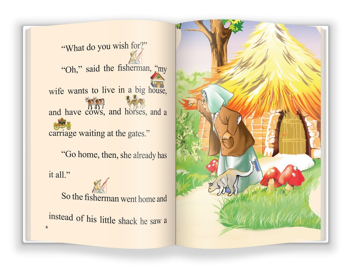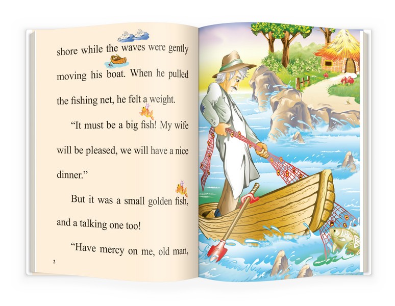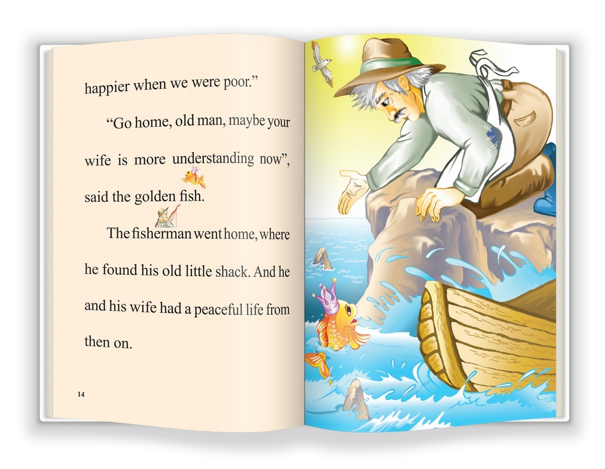 Cartea prezintă povestea plină de tâlc a pescarului care a prins peștișorul de aur ce putea să îndeplinească trei dorințe, într-un format special pentru copiii care vor să învețe să citească în limba engleză.