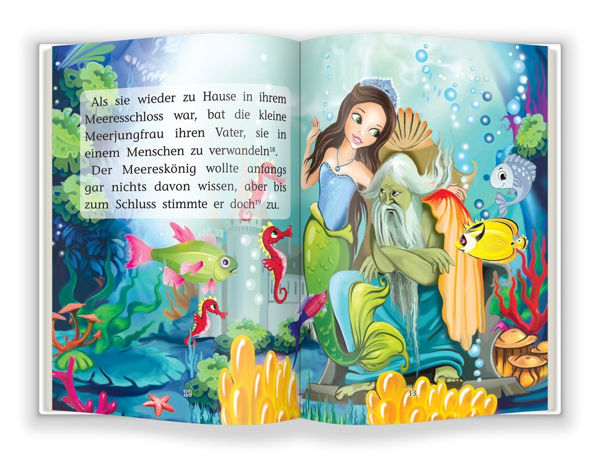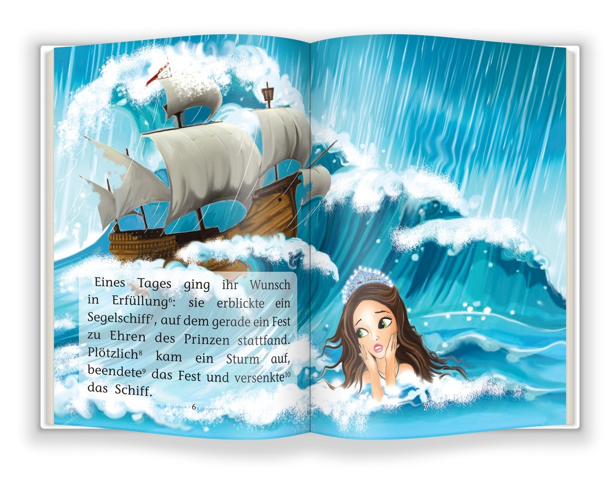 A reușit sirena îndrăgostită de un prinț să-și vadă iubirea împlinită? Micii cititori vor descoperi citind această carte, special creată pentru cei care abia acum se familiarizează cu textele în limba germană.