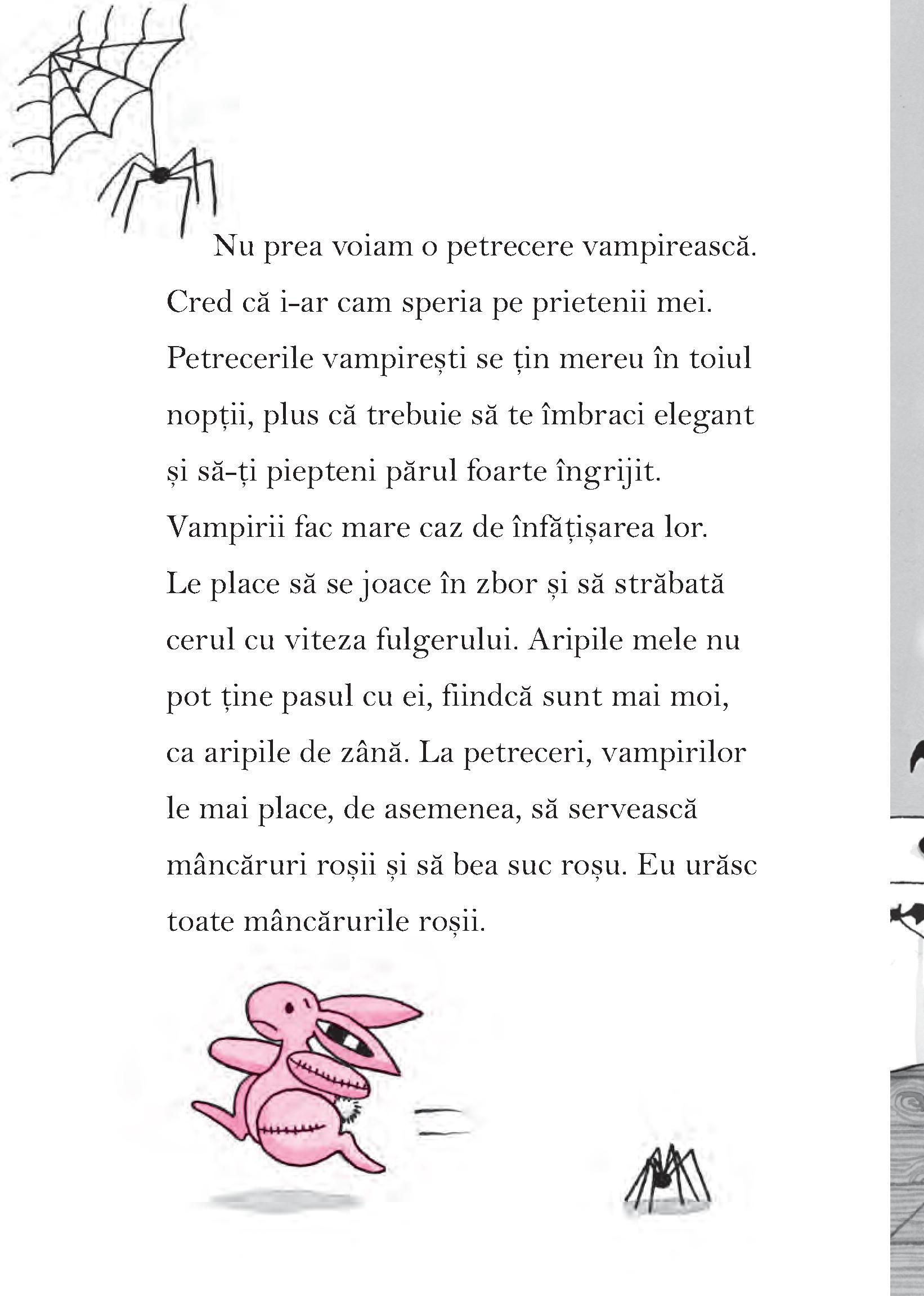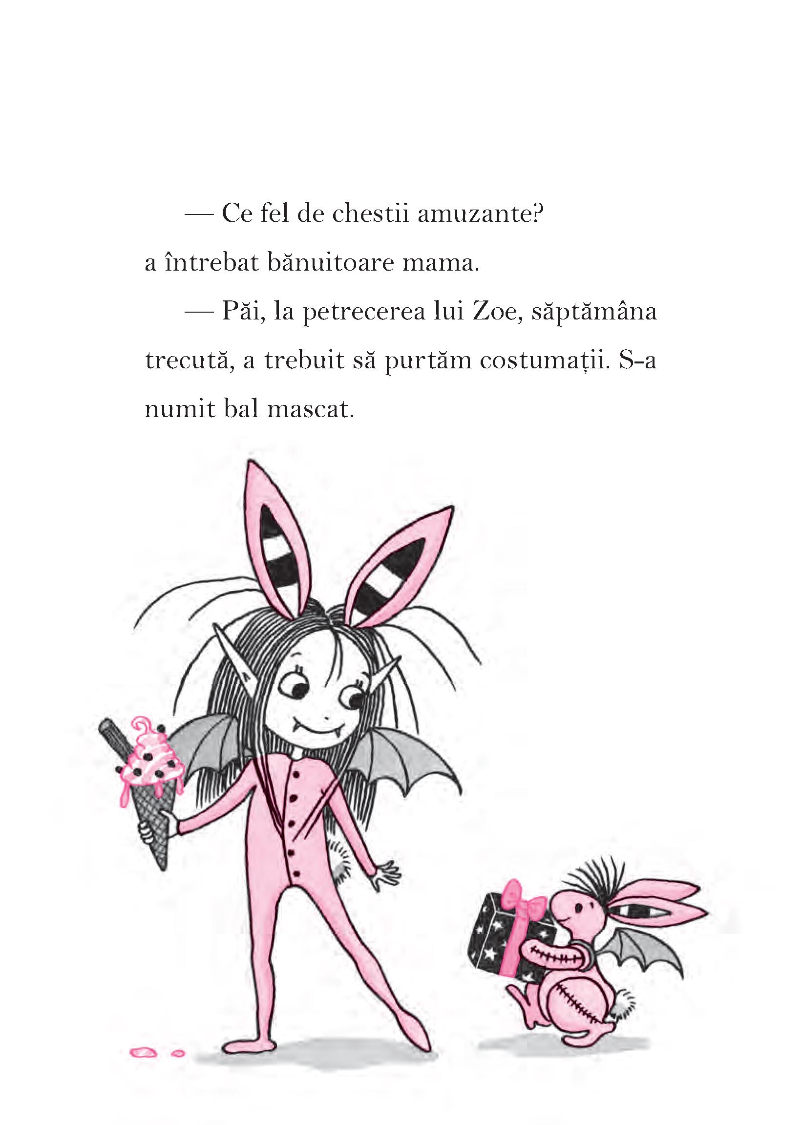 Îndrăgeşte noaptea, liliecii şi costumul negru de balet, dar şi soarele strălucitor, bagheta magică şi îl adoră pe Iepuraşul Roz.