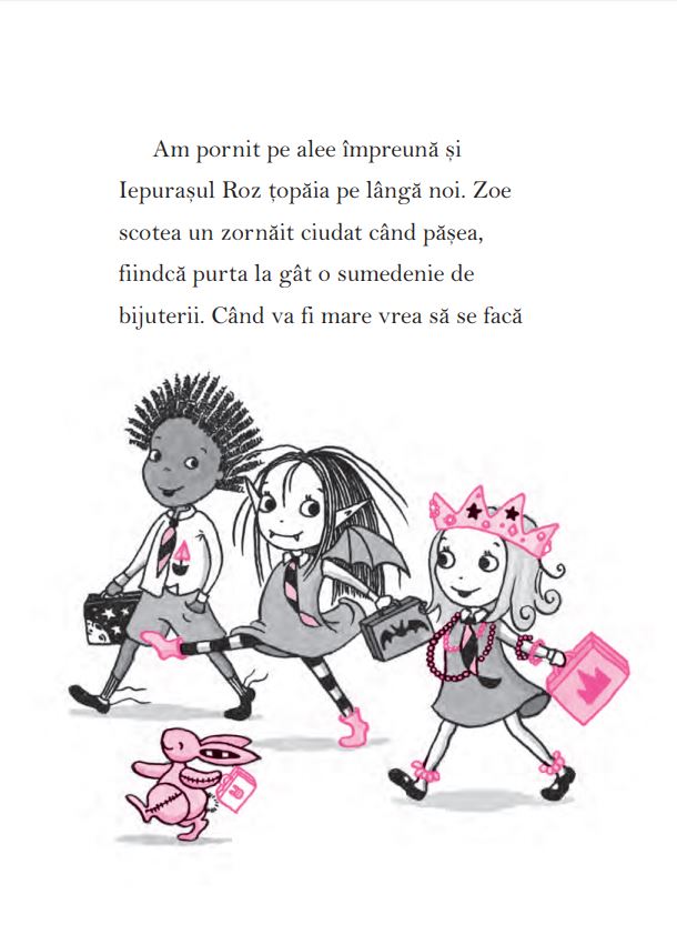 Îndrăgeşte noaptea, liliecii şi costumul negru de balet, dar şi soarele strălucitor, bagheta magică şi îl adoră pe Iepuraşul Roz.