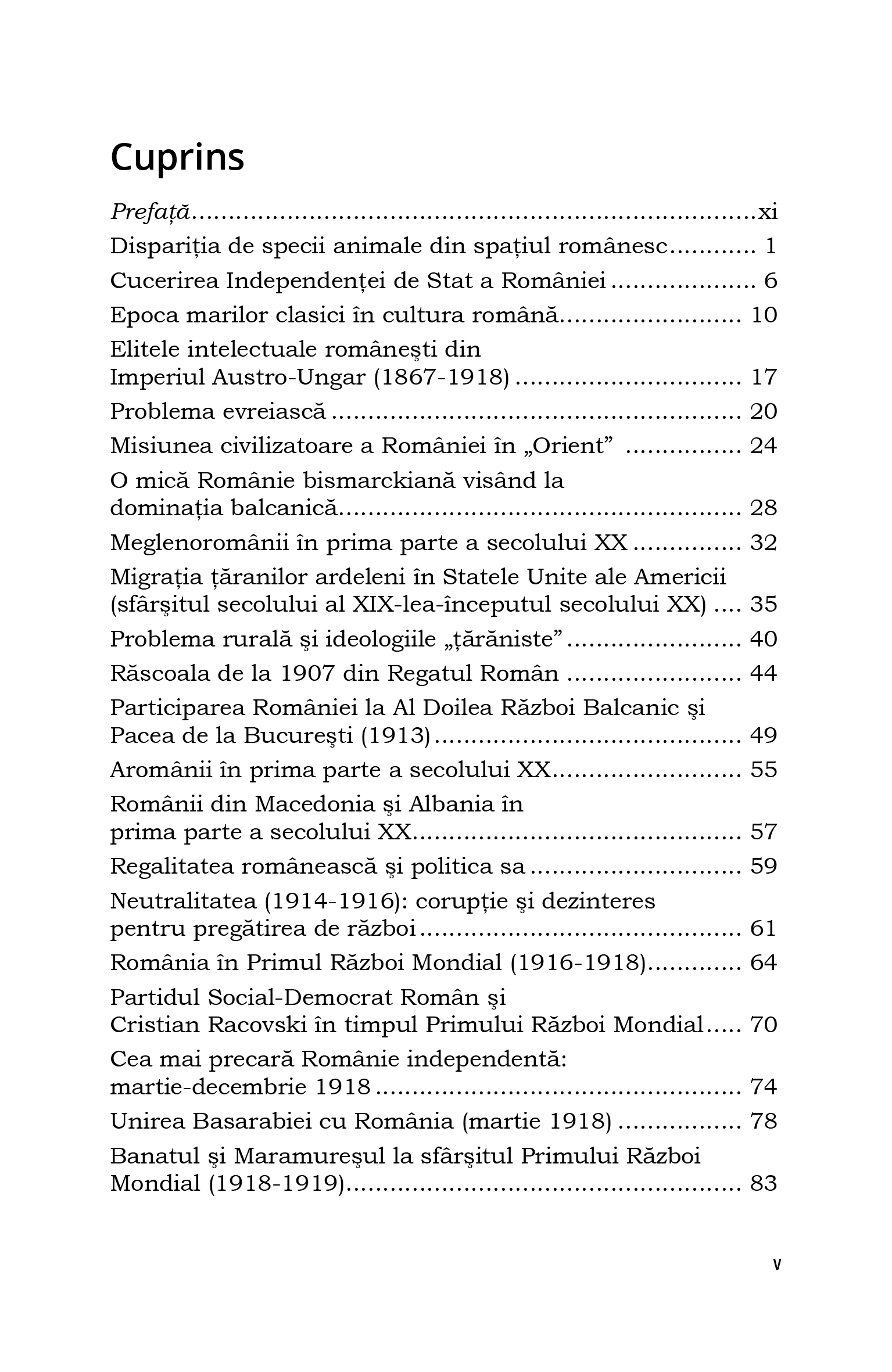 Prezentul volum a fost alcătuit pentru a oferi o interpretare sintetică a istoriei româneşti, de la apariţia statului român până astăzi, cu o anumită insistenţă asupra curentelor de gândire şi a celor artistice manifestate în acest interval de timp. El nu este un tratat, căci, aşa cum bine observa folcloristul Ovidiu Bîrlea, „într-un tratat sunt dezbătute toate aspectele domeniului, proporţional cu importanţa lor, în fapt cu suma cunoştinţelor dobândite până la acea dată”1. Un astfel de scop nu mi-a stat în intenţie aici. Am fost interesat mai curând de dinamica de factură culturală din interiorul noului stat, inclusiv prin recursul abundent la opiniile unora dintre principalii săi protagonişti şi observatori.