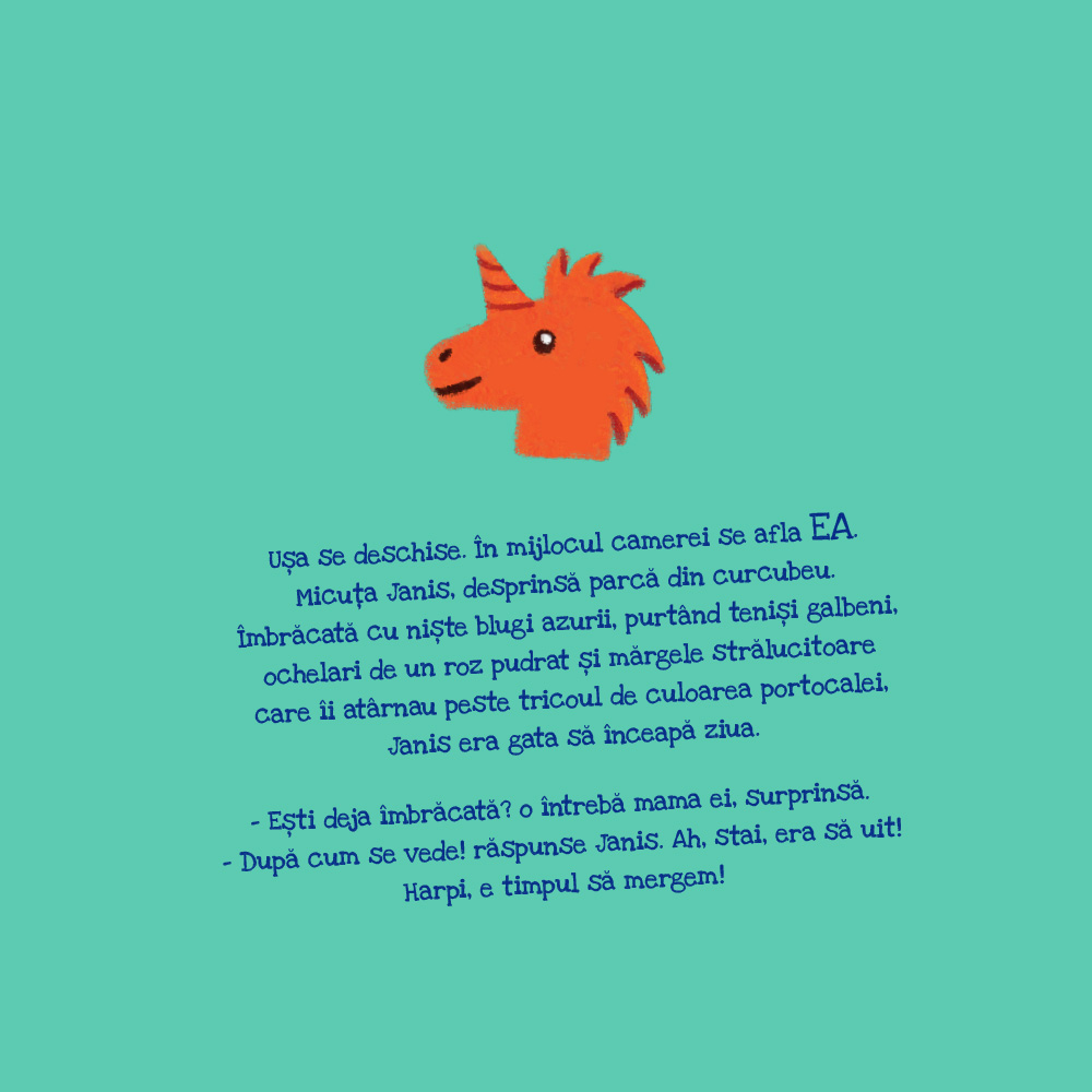 În scurt timp, Janis și Harpi vor susține primul lor concert, unde vor fi urmărite de o mulțime uriașă de oameni. Șușotelile răutăcioase ale colegilor de școală sunt singurele care i-ar putea sta în cale lui Janis, ciobindu-i puțin câte puțin încrederea în sine. Află din paginile acestei cărticele colorate și amuzante cum a reușit Janis să-și urmeze visul, să-și învingă temerile și să devină marea cântăreață pe care ne-o amintim cu toții.