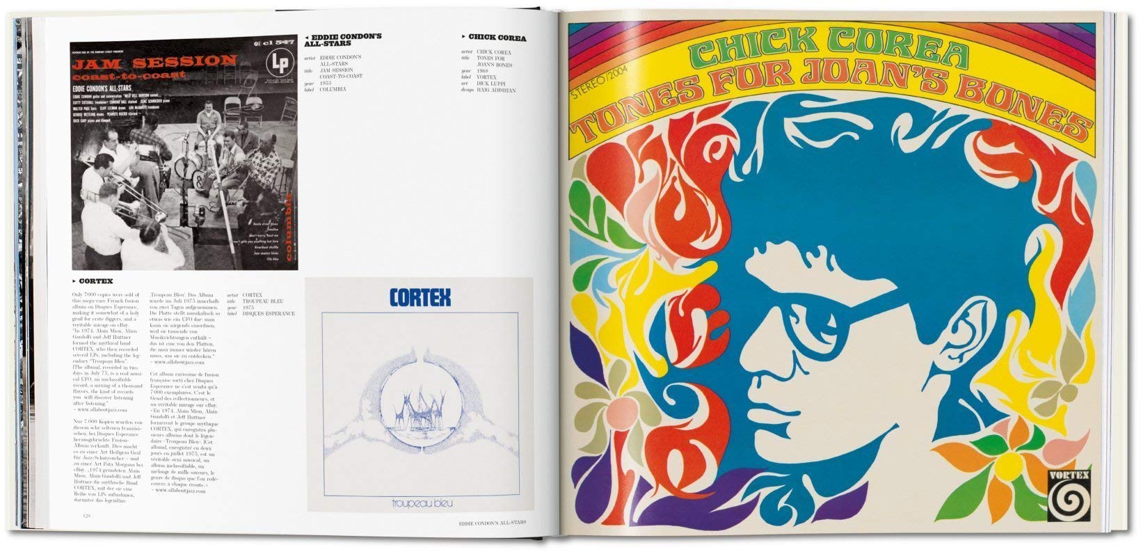 From the 1940s through to the decline of LP production in the early 1990s, each chosen cover design is distinct in the way it complements the energy of the album's music with its own visual rhythms of frame, line, text, and form. To satisfy even the most demanding of music geeks, each record cover is accompanied by a fact sheet listing performer and album name, art director, photographer, illustrator, year, label, and more.