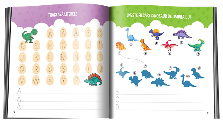 Descoperă cei mai cunoscuți și mai simpatici dinozauri și rezolvă tot felul de activități colorate și amuzante alături de ei!