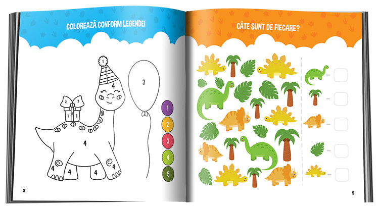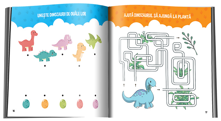 Descoperă cei mai cunoscuți și mai simpatici dinozauri și rezolvă tot felul de activități colorate și amuzante alături de ei!