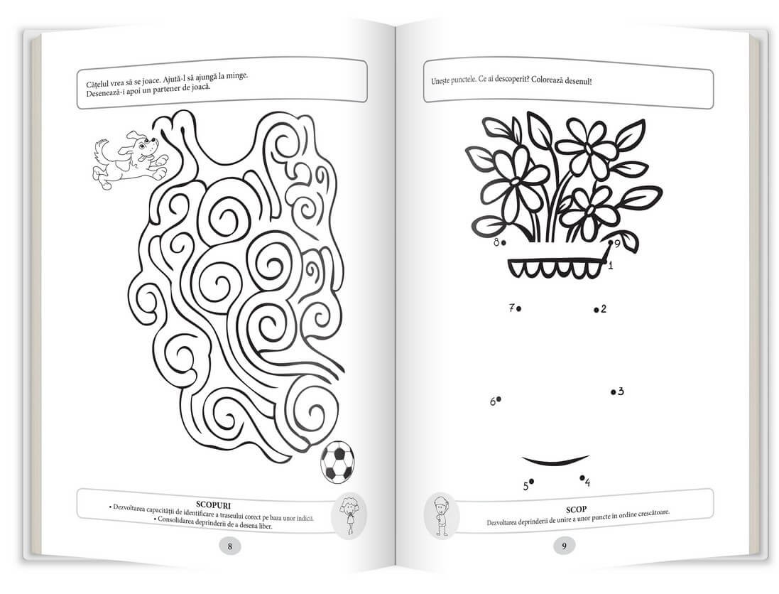 Avantajul acestor caiete este faptul că pe fiecare pagină există sarcini multiple, care îi oferă copilului prilejul să-și exerseze diverse cunoștințe și abilități. Caietul de lucru Jocuri și activități didactice • grupa mare urmărește mai multe scopuri didactice:
