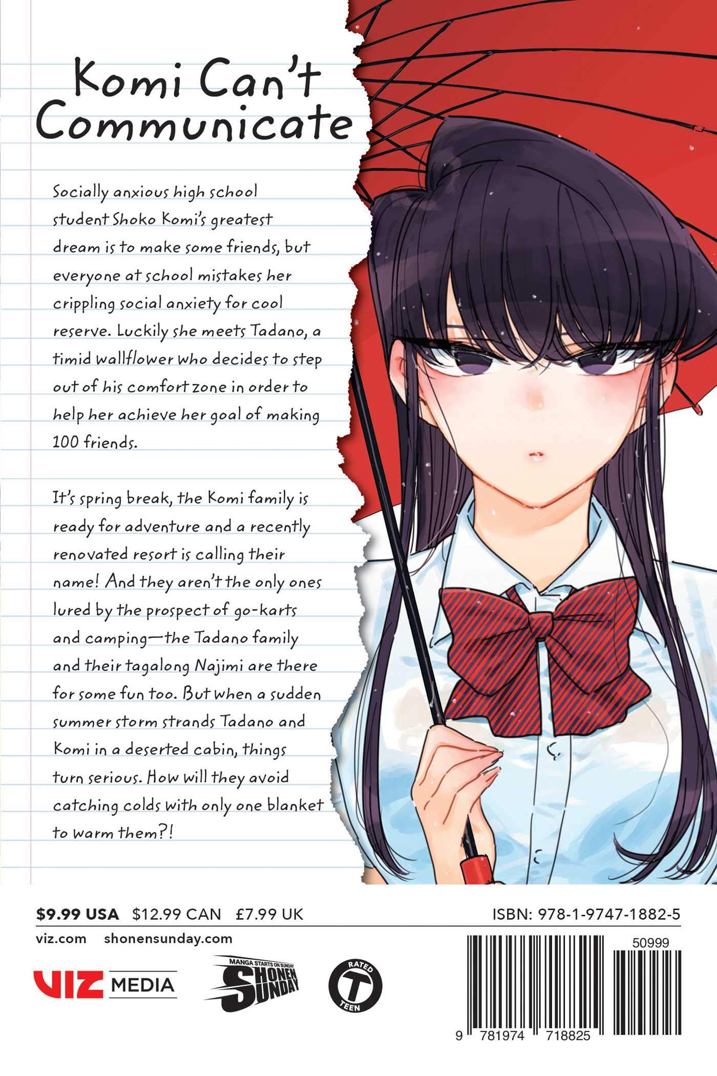 It’s Golden Week, the Komi family is ready for adventure and a recently renovated resort is calling their name! And they aren’t the only ones lured by the prospect of go-karts and camping—the Tadano family and their tagalong Najimi are there for some fun too. But when a sudden storm strands Tadano and Komi in a deserted cabin, things turn serious. How will they avoid catching colds with only one blanket to warm them?!